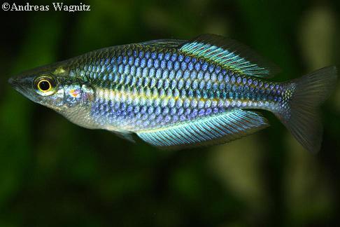 Art, der australischen Regenbogenfische, ist Melanotaenia trifasciata.