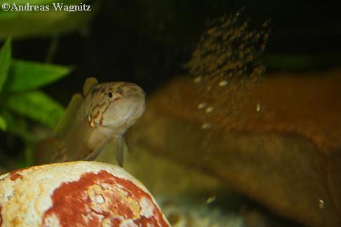 Mittlerweile haben meine Tiere bereits mehrfach abgelaicht und ich konnte einige Beobachtungen zur Brutpflege machen. Das Gelege wird relativ aggressiv verteidigt, dies ganz besonders gegen Artgenossen. Andere Fische, wie z.B. Regenbogenfische, werden zwar auch vertrieben, aber nicht so vehement. Das Nach dem Schlupf der Larven, werden diese nicht nur vom Vatertier toleriert, sondern aktiv verteidigt. Das kann bis zu 2 Monate andauern.