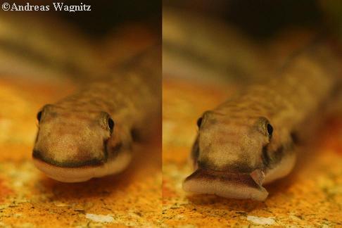 Hier gut zu erkennen die vorstülpbare Lippe bei Sicyopterus cynocephalus,